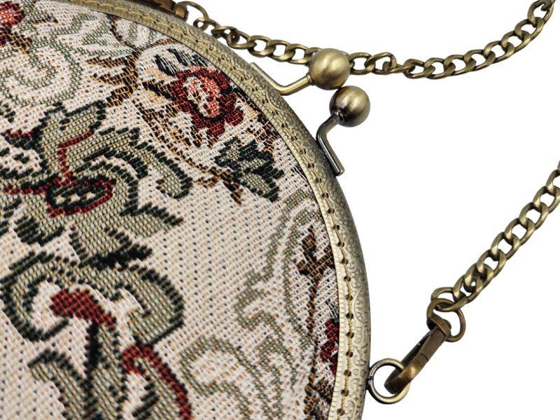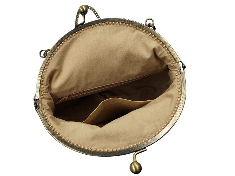 Η τσάντα κλείνει με μπρονζέ οβάλ μεταλλικό στόμιο (20 εκ).